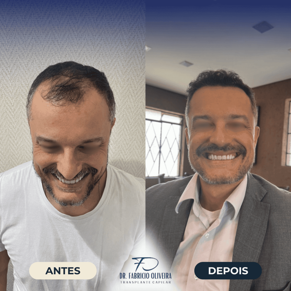 A evolução do transplante capilar pode ser observada progressivamente ao longo dos meses, com melhora na cobertura capilar e redistribuição dos fios, respeitando as características individuais de cada paciente.